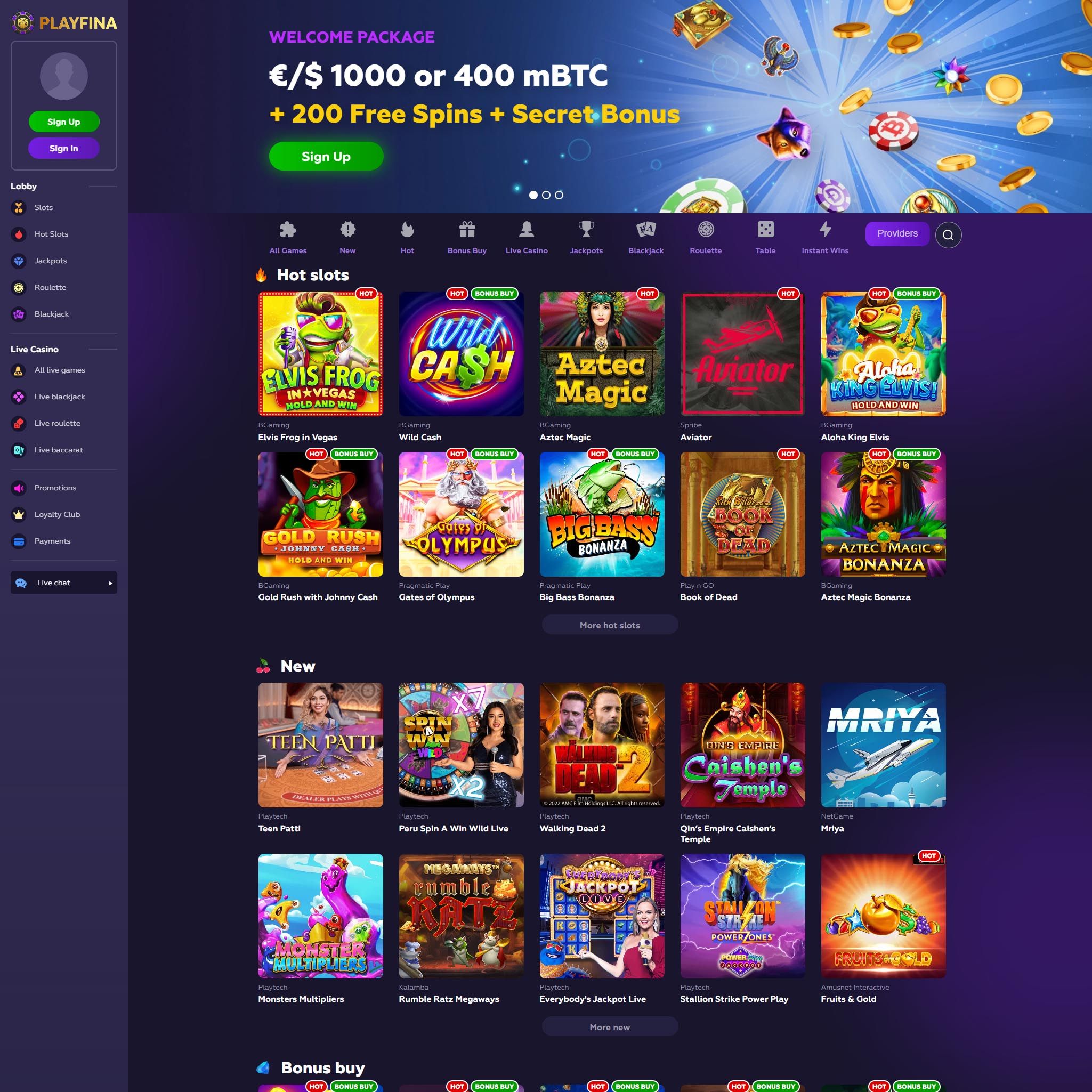 At Playfina casino, players can enjoy a wide range of bonuses and promotions to enhance their gaming experience. The casino offers a generous welcome bonus to new players who create an account and make their first deposit. This bonus often includes a match bonus on the initial deposit and free spins on selected slot games.